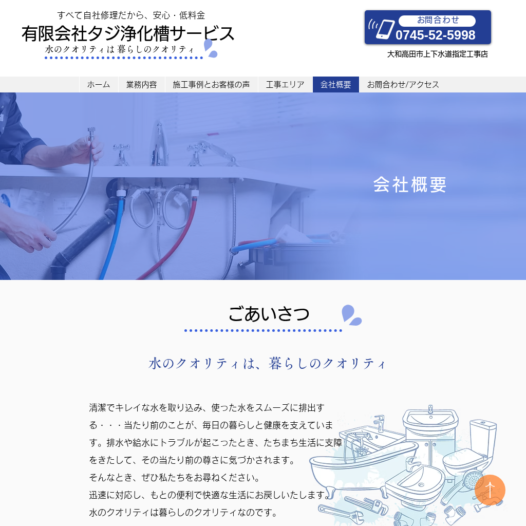 有限会社タジ浄化槽サービスは、清潔でキレイな水を取り込み、使った水をスムーズに排出する“当たり前”を支えます。