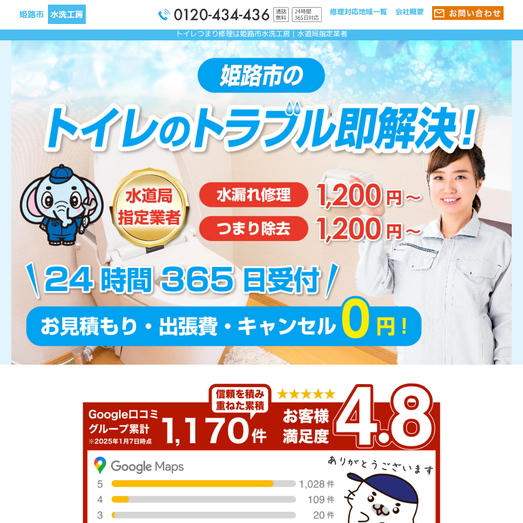 水洗工房(運営:株式会社水協)は姫路市の水道局指定業者。