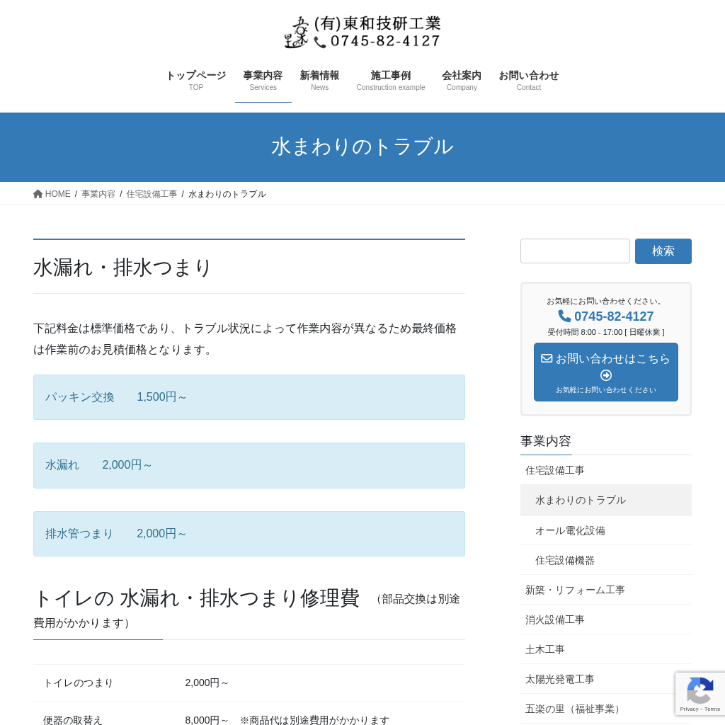 (有)東和技研工業は、水漏れや排水つまりの修理から器具の取替え・蛇口交換まで、水まわりの工事に幅広く対応。